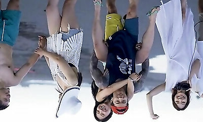 Bunch of steamy Chinese sluts get nailed right at the beach in gangbang romp movie